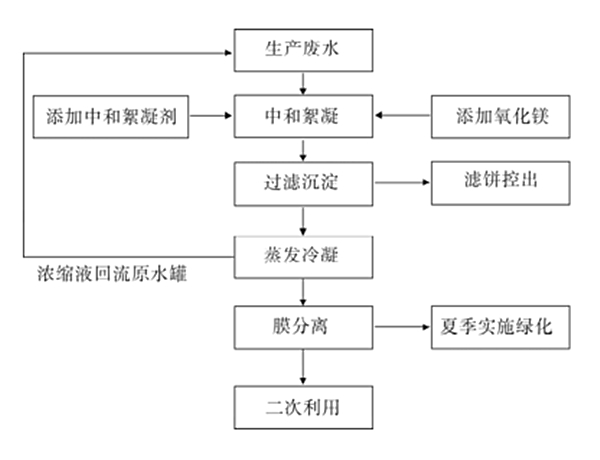 2、蒸發(fā)段工藝。中和槽濾液送往高效蒸發(fā)器,濾液蒸發(fā)濃縮,進人中和池。