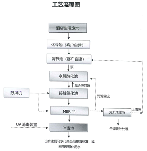 由上圖可見,廢水經過解酸池、MBE池和氧化池后,再添加以下消毒液,經過化學反應后,在排除達標的廢水。